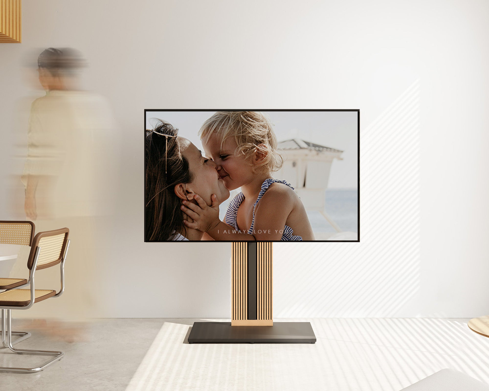 It fits snugly into the corner of the room without the need for a bulky tv unit which is perfect for the kitchen! The Easel comes with a cable clip on the back of to hide messy wires… I’ve also hidden the sky box in my wicker basket ☺️