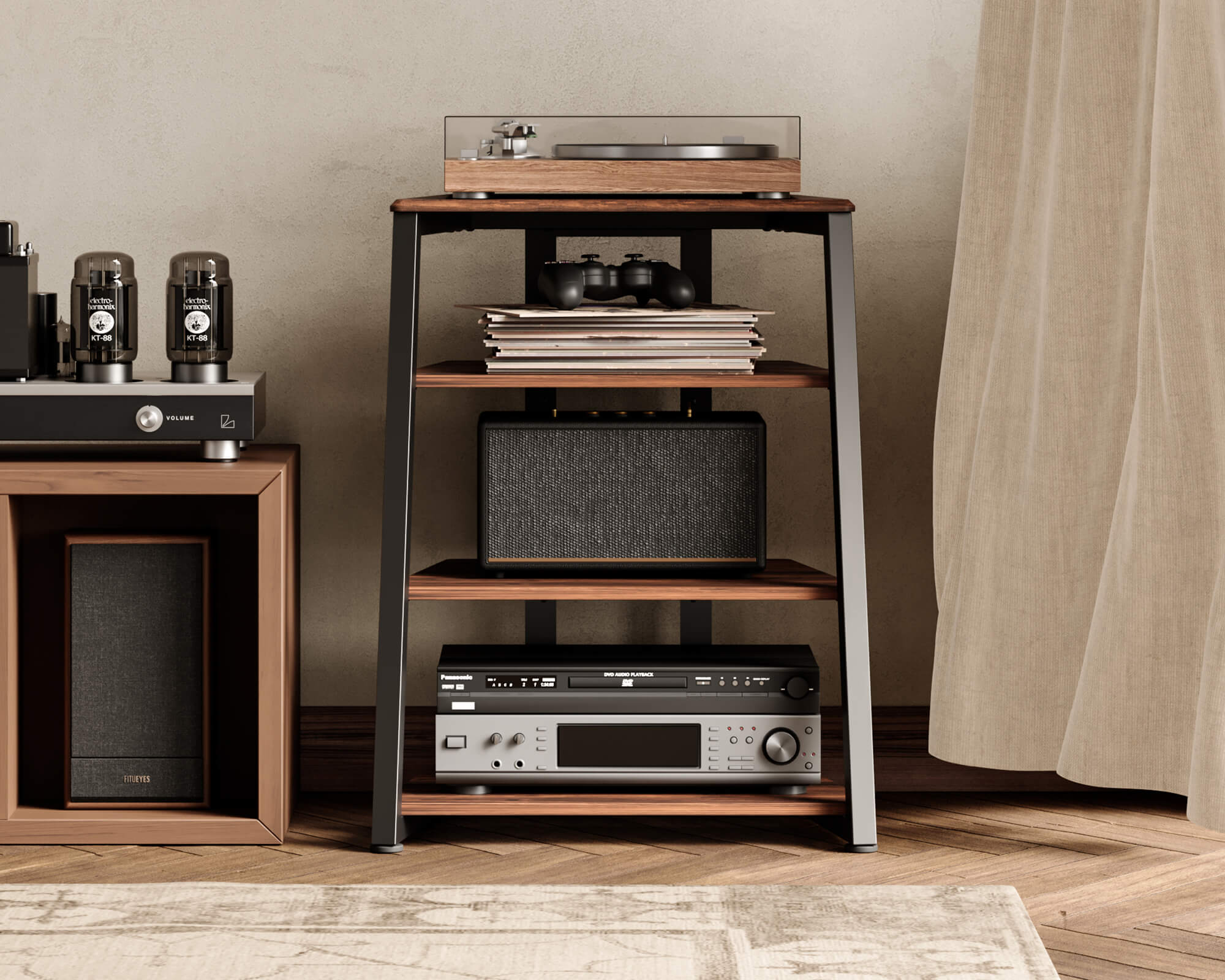 This Stunning Audio Rack boasts a stylish design that will elevate the look of any room while providing ample space for your audio equipment.