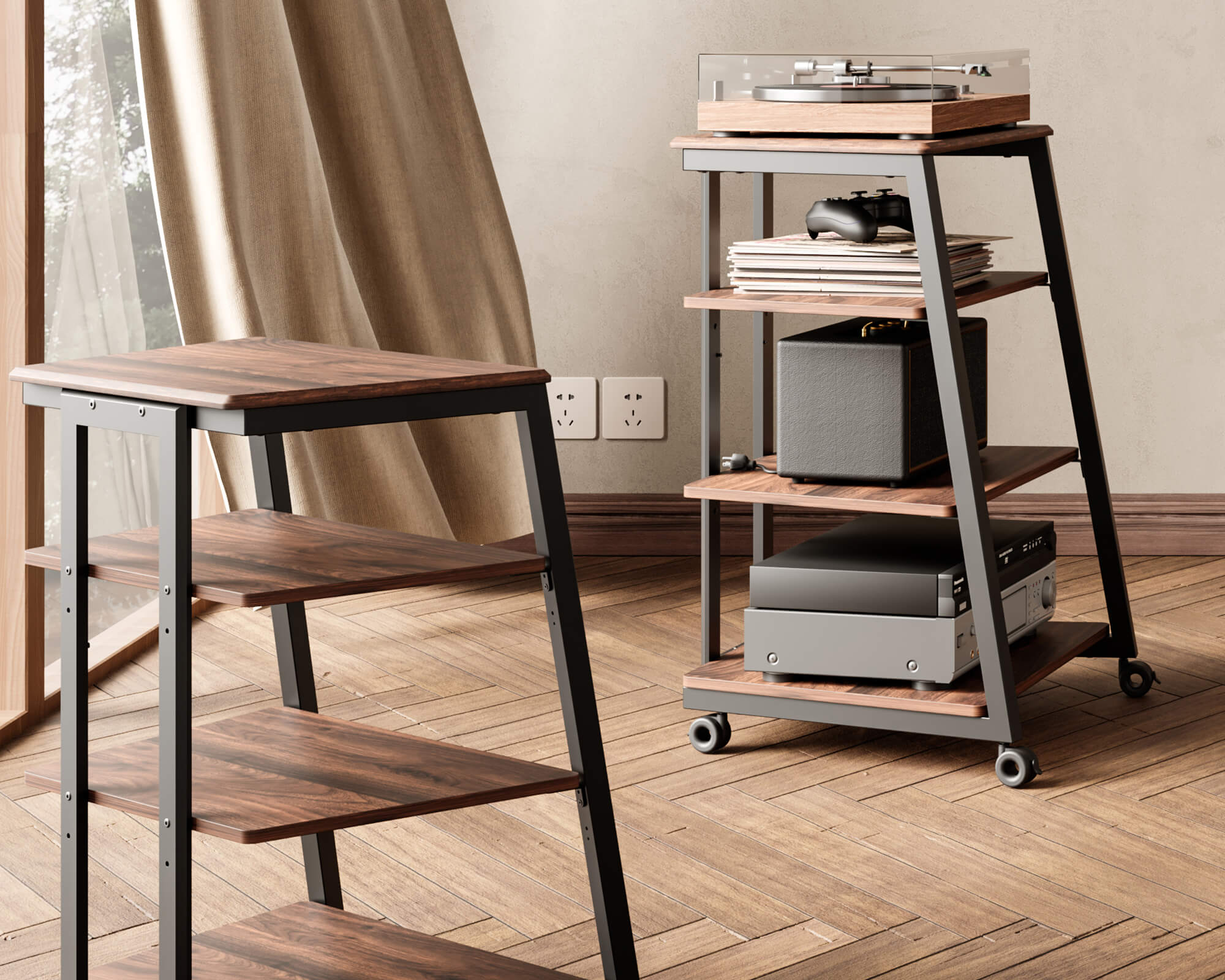 The Audio Rack’s Mobility feature lets you position your setup effortlessly—smooth, stable, and ready when you are.