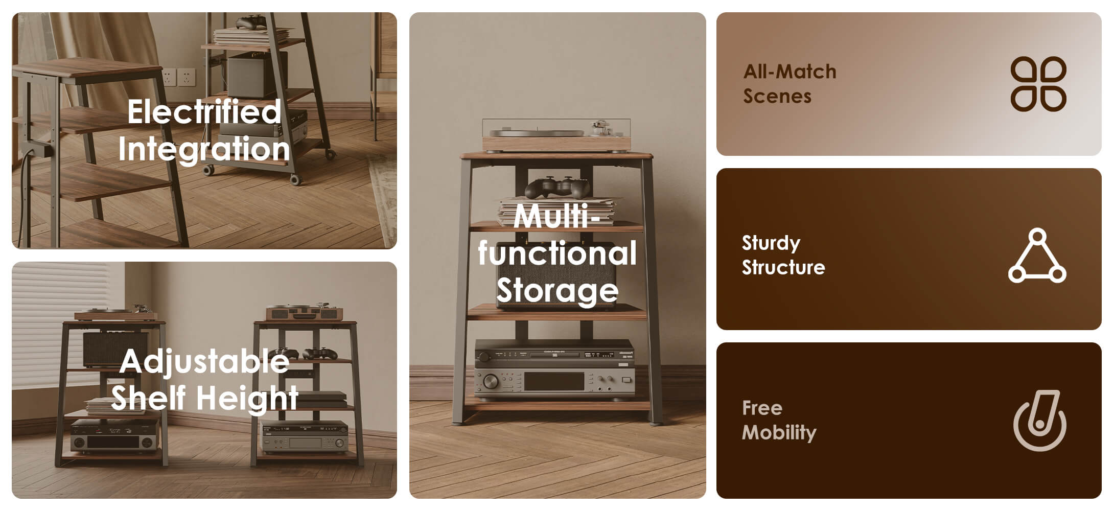 The unique tower design not only enhances stability but also adds an artistic touch. This HiFi audio rack isn’t just a versatile storage solution,it’s also a stylish decorative piece.