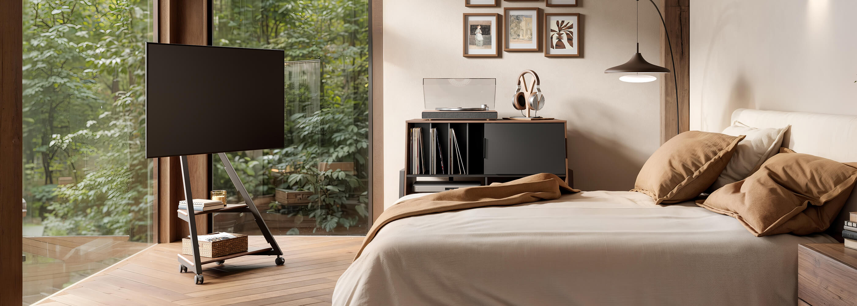 The FITUEYES Eiffel Series TV stand is crafted for effortless, uninterrupted immersion. With an adjustable height ranging from 1163mm to 1299mm, plus the ability to swivel 15° left or right, tilt 5° upwards, and 15° downwards, it offers maximum flexibility for a customised, ergonomic viewing experience.