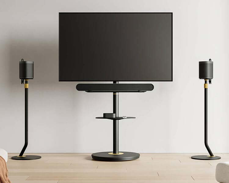 Concealed storage for integrated set-top boxes and cable management functions ensure a clean and tidy overall appearance, secured in place with magnetic attachment.