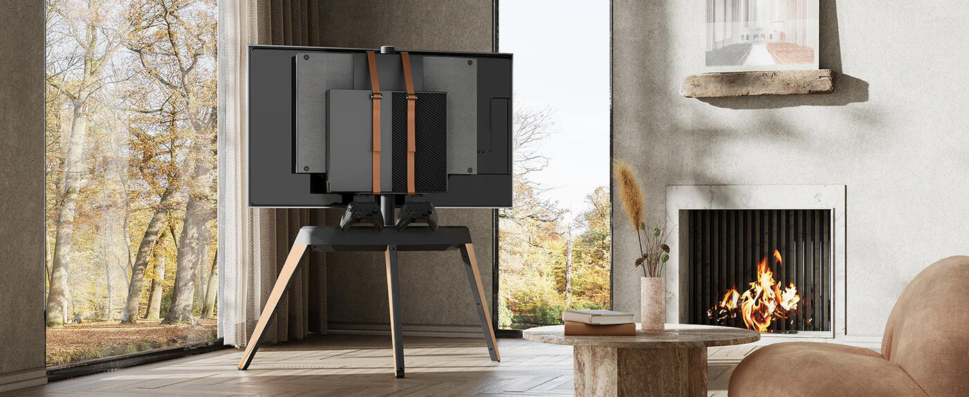 The quick release snap-on mounting system secures the Gaming Console and further enhances the stability of the TV stand.