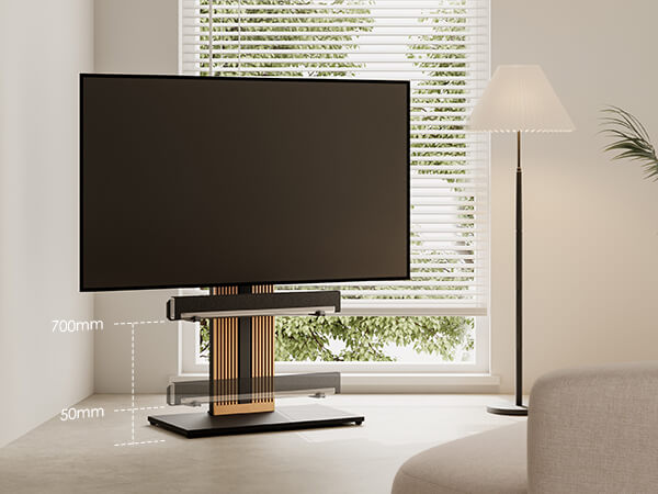 Provides infinite height adjustment, adjusting the height within the bracket equipment's range (the maximum limit range is 50-700mm from the ground) so as to achieve the perfect match between the laminate storage and the TV/bracket equipment.